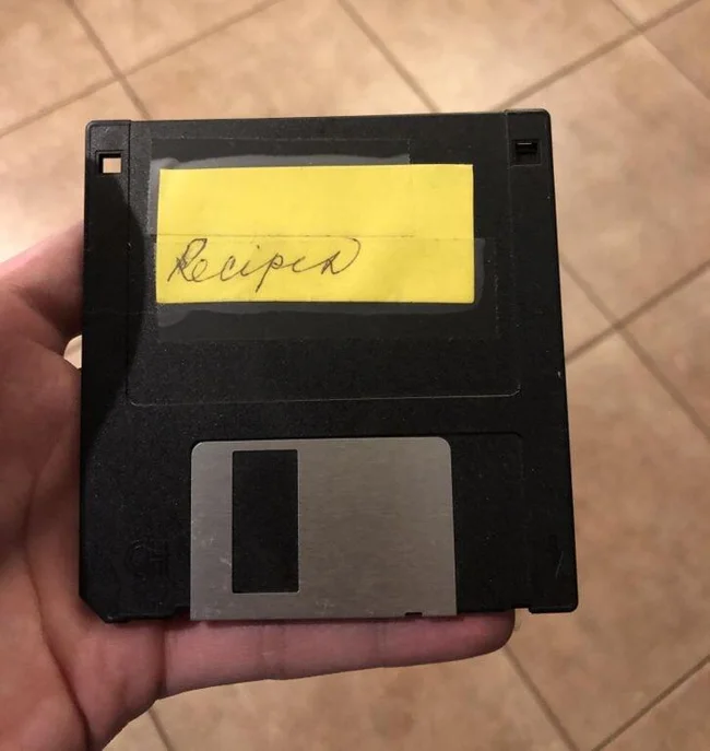 Бабуля пробует идти в ногу со временем и хранит рецепты на дискете!