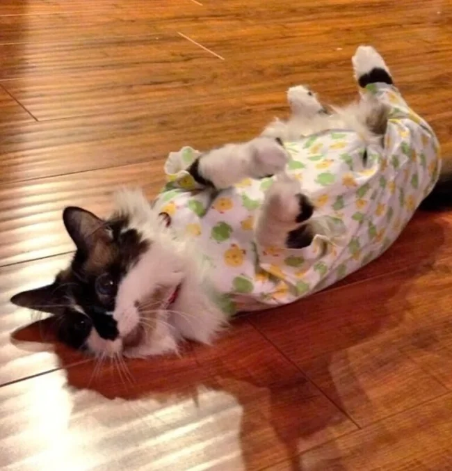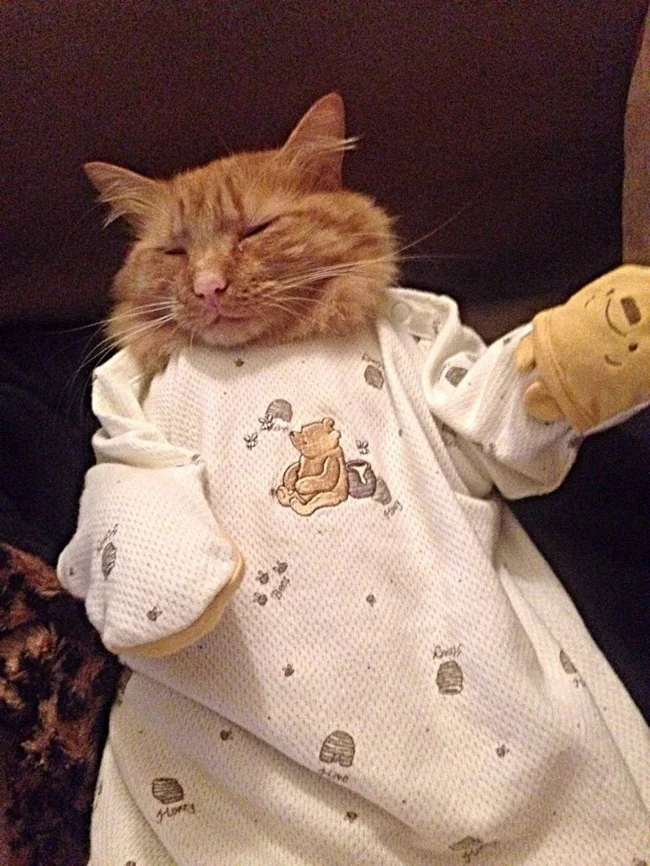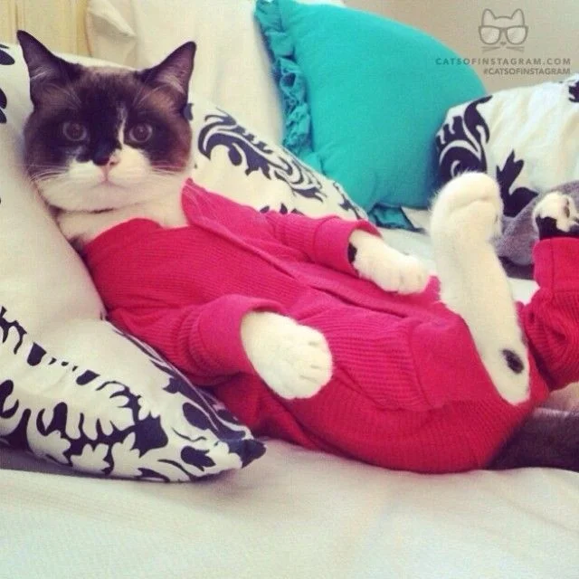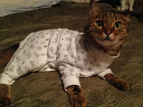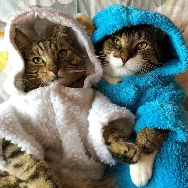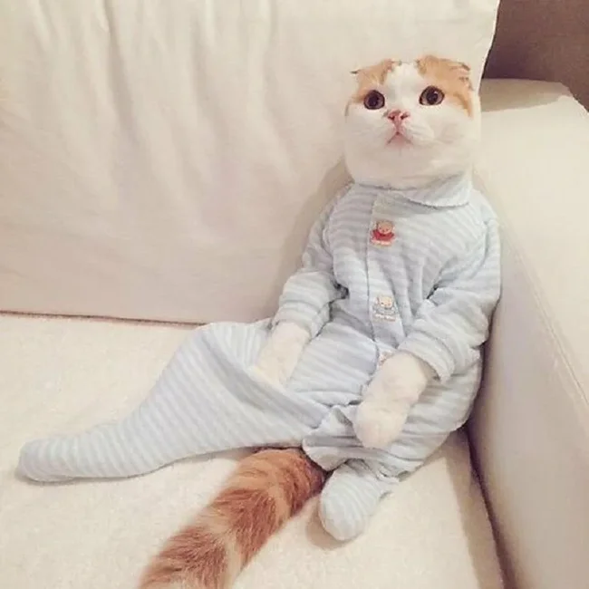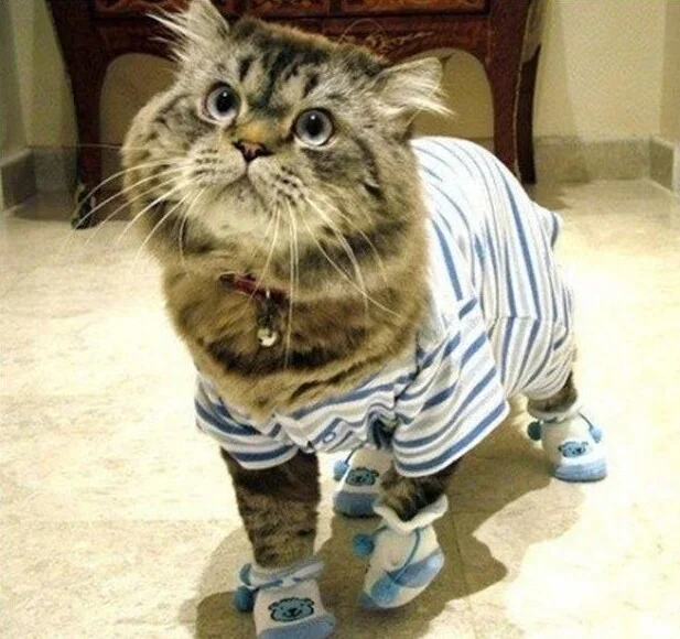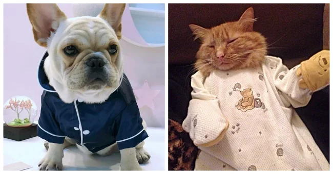 Особое место в котором занимает стильная одежда для сна. Конечно, собаки и кошки не испытывают особого восторга, когда их втискивают в курточки и штанишки, поскольку это противоречит их природе. Но для фотосессии вполне можно нарядиться и потерпеть, тем более что фотки готовящихся ко сну симпатяг действительно получаются смешными.
