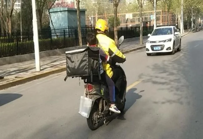 Чтобы не выходить из дома: в Китае родители нанимают курьеров отвезти ребёнка в школу (3 фото)