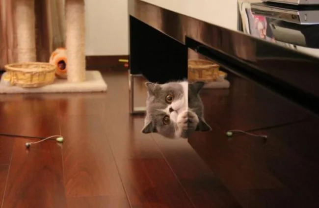 Особенно если они сами послужили его причиной. К примеру, невольными или, что чаще, вольными пакостями. И услышав грозный окрик или возглас удивления, не предвещающий ничего хорошего, котаны пытаются быстро спрятаться и слиться с местностью. Как у них это получается? С переменным успехом, но неизменно смешно.