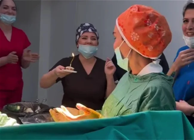 В Азербайджане врач-гинеколог отпраздновала день рождения прямо в операционной (2 фото + 1 видео)