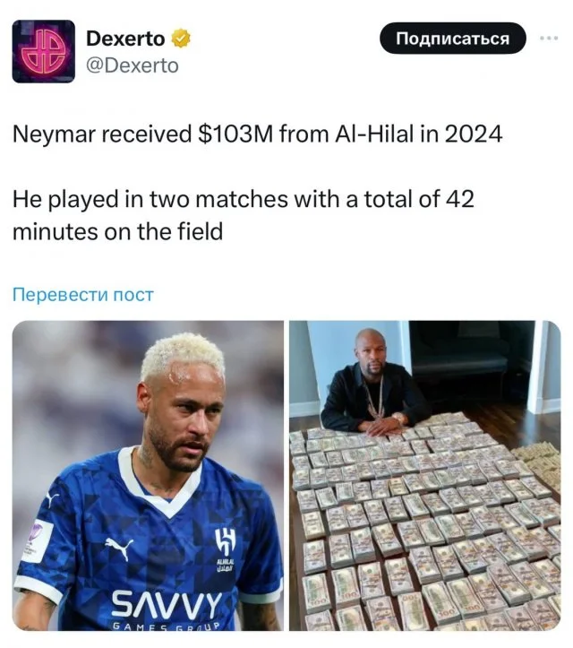 Неймар в Саудовской Аравии заработал 103 миллиона долларов в 2024 году... А теперь самое интересное - как он получил такие деньги.