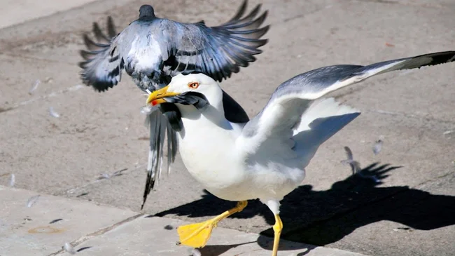 В городе чайка становится крупнейшей птицей на районе. Даже ворона — и та в 1.5-2 раза меньше морского оккупанта. А значит, всю ту еду, что нашел воробушек или голубь, приватизирует чайка. Кто-то не согласен с таким раскладом? В таком случае чайка уберёт конкурентов. В собственный желудок. Мелкие птички ей на один укус, а на обленившихся городских голубей даже охотиться особо не нужно!
