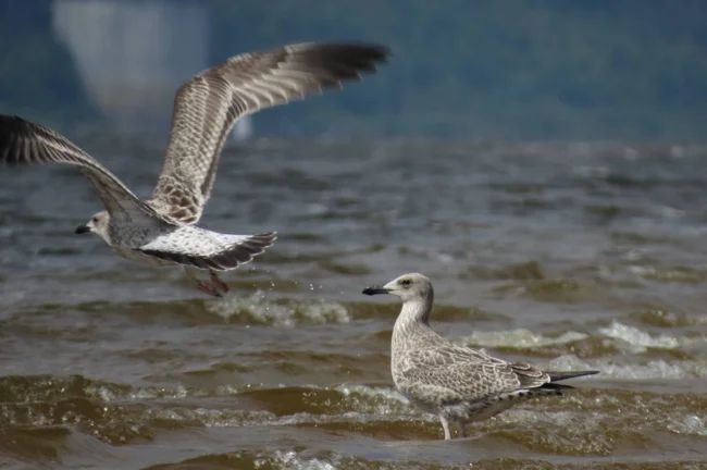 Вот эти красавчики, кстати, тоже серебристые чайки. Просто юные ещё, в подростковом окрасе.