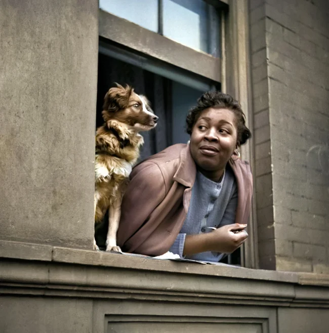 Женщина и ее собака в районе Гарлема. Нью-Йорк, 1943 год.