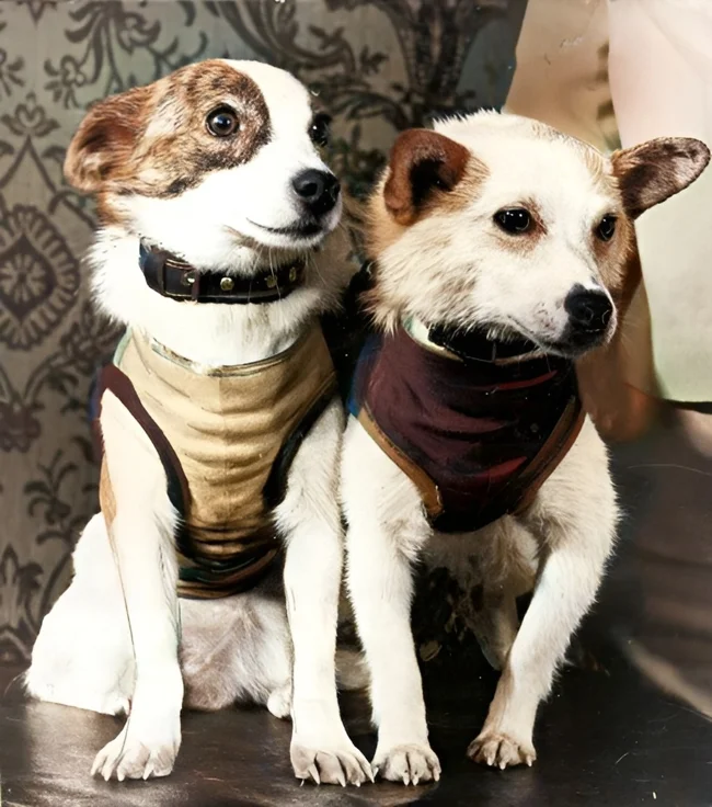 Собаки-космонавты, совершившие космический полёт на советском корабле «Спутник-5» 19 августа 1960 года. ![]()