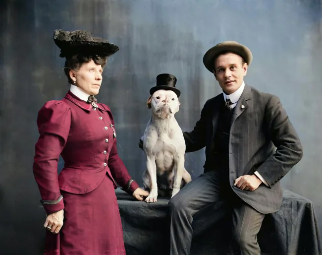 Мистер и миссис Фрэнк Керн и их дрессированная собака Бобби, около 1905 г.