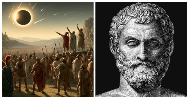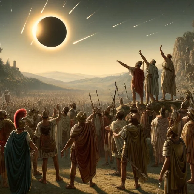 Представьте себе следующую ситуацию: два яростных царя воюют уже пять лет. Их люди гибли, но конца противостоянию не было видно. Внезапно небо, которое до сих пор дрожало от лязга доспехов, темнеет на глазах: наступает солнечное затмение.