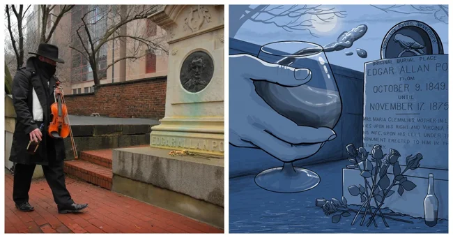 В 1949 году, 18 января, когда в 12 часов ночи должен был настать день рождения По, на могиле был замечен незнакомец. Это было около полуночи, и, вероятно, на это событие обратили внимание только потому, что оно произошло в 100-летнюю годовщину смерти поэта.