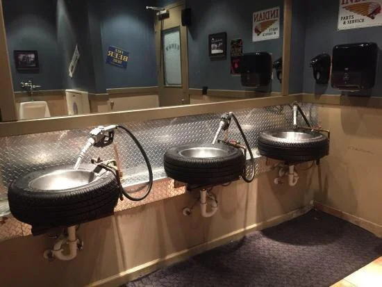 Максимально тематические раковины в ресторане «Гараж Форда»