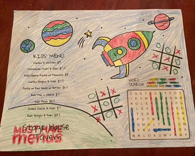 Здесь для нумерации столов используются детские книги. Читайте, пока ждёте обед!