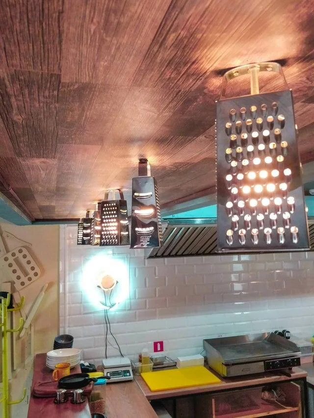 И ещё одна кулинарная деталь интерьера — светильники-тёрки