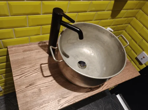 Кастрюля вместо раковины — очень даже логичный ход для ресторана