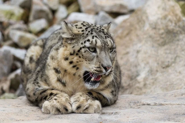 Широкие, покрытые мехом лапы снежного барса служат естественными снегоступами, помогая распределить его вес по мягкому снегу и защищая от холода.
