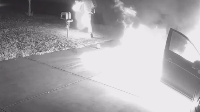 Злоумышленников охватило пламя при попытке сжечь автомобиль (4 фото + 1 видео)