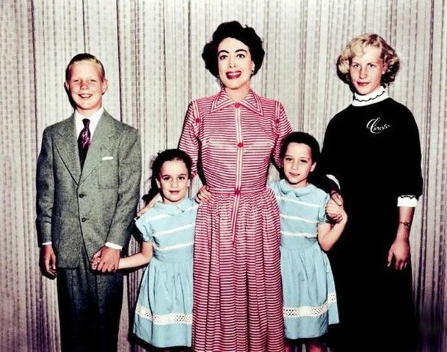Знаковая голливудская звезда Джоан Кроуфорд (настоящее имя - Люсиль Фэй Лесюр) была матерью двух приёмных детей – Кристофера и Кристины, а потом родила собственных – девочек-близняшек.