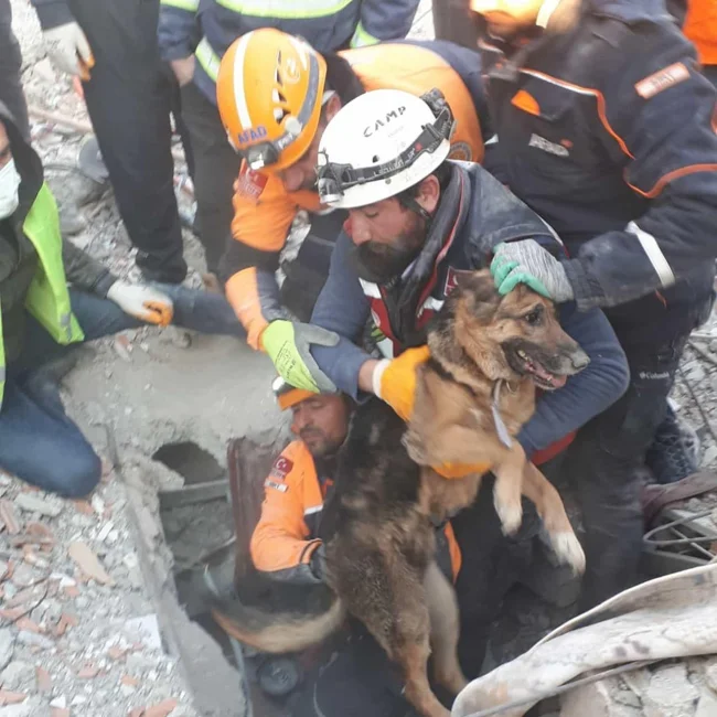 Собаку и двух её щенков вытащили живыми из-под завалов через 124 часа после землетрясения в Турции