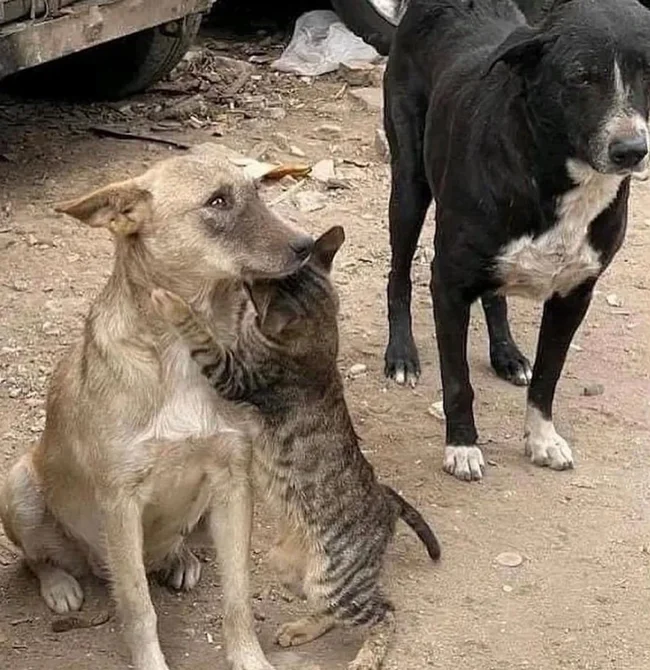 6. Кот обнял собаку, когда их спасли из-под завалов после разрушительного землетрясения в Сирии