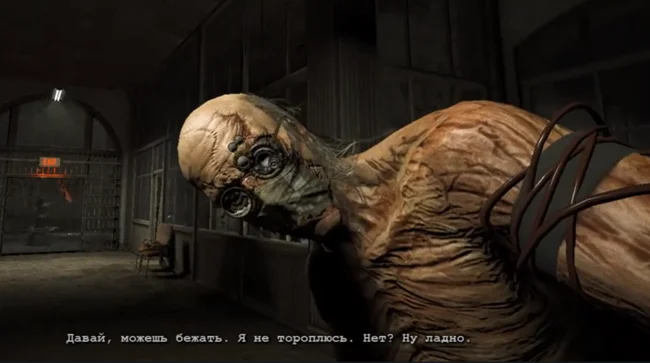 Самое страшное произойдет тогда, когда мы встретим бывшего охранника лечебницы по имени Крис, который больше похож на супермутанта из "Fallout". Так как оружия у нашего журналиста нет, то всё, что мы можем сделать - это бежать от него и прятаться где только можно (под кроватями, в шкафчиках и т.д.).