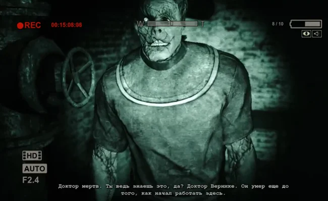 Внутри лечебницы журналист обнаруживается трупы и живых, но изуродованных и спятивших пациентов. После того как один из них неожиданно на нас набрасывается, сердце уже уходит в пятки, а ведь игра еще даже не началась.