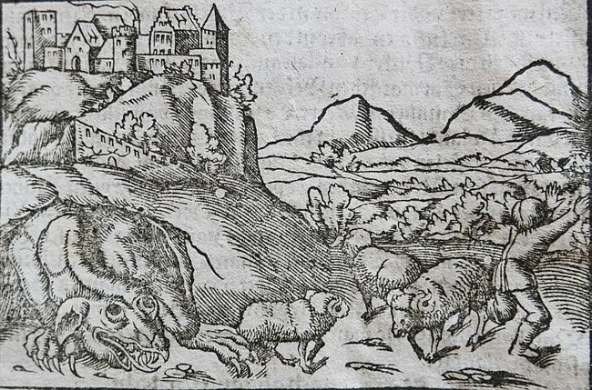 Зарисовка с изображением дракона Себастиана Мюнстера (1544)