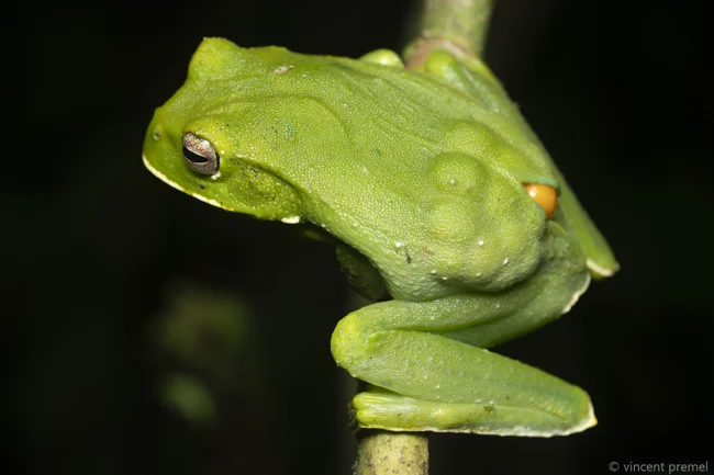 Теперь вместо больших перепончатых лапок у них появились длинные цепкие пальчики. А миниатюрные габариты и хиленькое телосложение играют на руку. Представители семейства вырастают от 1.5 до 11 см — даже лист может выдержать вес этой мелочи. Главное: лишний раз не шелестеть и не высовываться. Пока на джунгли не опустится сумрак, амфибия — легкая закуска для каждого встречного.