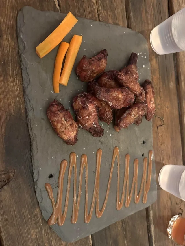 «Крылышки подали на каменной плите. На них не было соуса, поэтому нам пришлось елозить ими по камню»