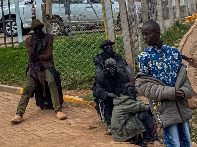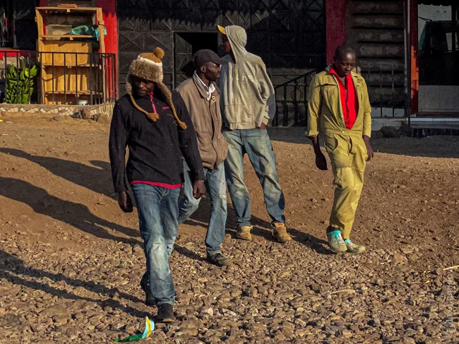 Большая часть фотографий были сняты мною на телефон из джипа, так как остановиться и сфотографировать местных жителей было опасно и чревато потерей фото техники, денег и здоровья. Местные жители негативно относятся к белым людям и фотографам в том числе. Кенийцы, увидев, что их снимают, могут потребовать внушительную сумму денег за каждый снимок или вынуждают купить ненужный товар по огромной цене. Поэтому, когда нам необходимо было сделать остановку, заправить авто, мы вовсе прятали фотоаппараты и делали незаинтересованный вид.