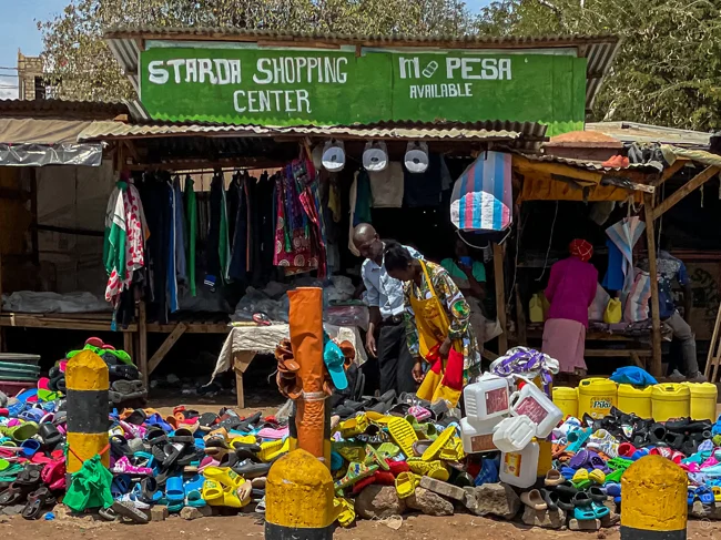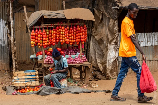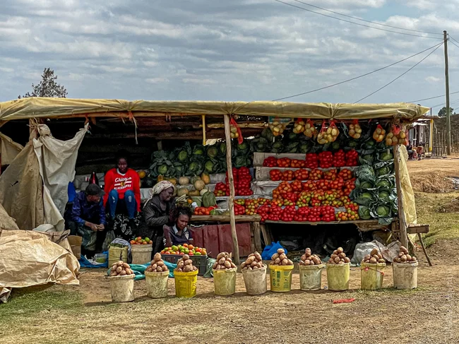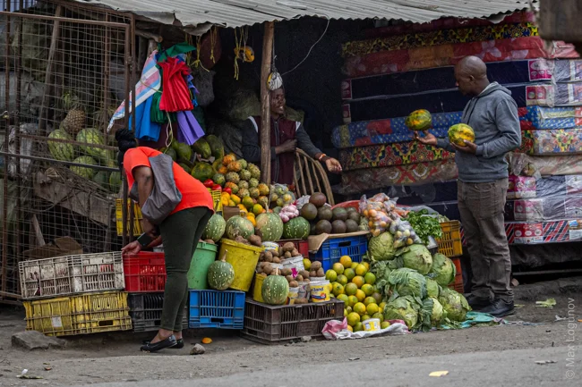 Продуктовый магазин в Кении обычно представляет собой деревянный стол, на котором лежит что-то съестное.