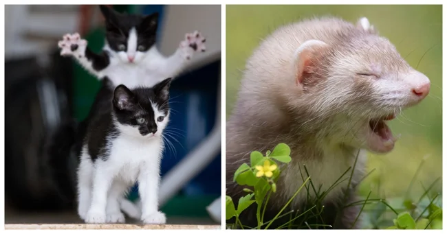 Конечно, этот маленький хорёк зевает, но выглядит при этом игривым и смеющимся.