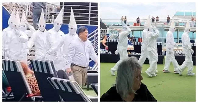 Пассажиры круизного лайнера были напуганы костюмами экипажа, напоминающими наряды Ку-клукс-клана. Видео с этим моментом распространилось в Сети и вызвало бурное обсуждение.