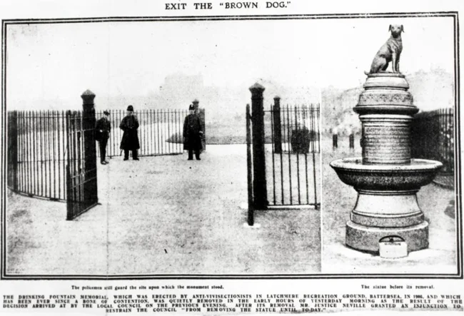 Чтобы понять всю серьёзность символизма этой милой собачьей скульптуры, нужно вернуться в 1903 год, когда обвинения в бесчеловечных (и незаконных) экспериментах над коричневым терьером в Университетском колледже Лондона вызвали возмущение общественности.