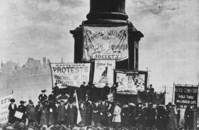 Демонстрация 19 марта 1910 года на Трафальгарской площади в знак протеста против демонтажа статуи