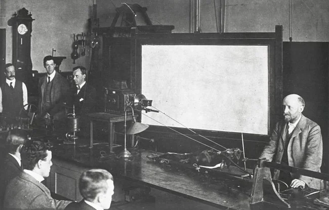 Перед лекцией физиолог Эрнест Генри Старлин, проводивший опыт вместе с коллегой и первооткрывателем гормонов Уильямом Мэддоком Бейлиссом, снова вскрыл брюшную полость, чтобы проверить состояние поджелудочной железы. Потом он сделал разрез на шее, чтобы обнажить слюнную железу и прикрепить к ней электроды.