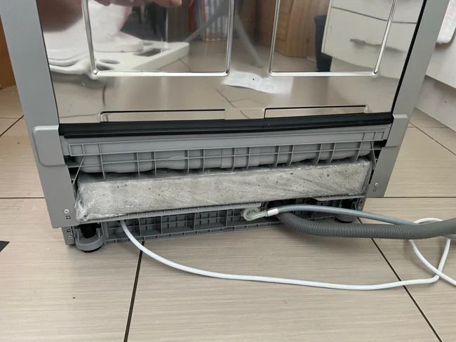 4. Прямоугольный блок, похожий на бетон, в задней части моей новой посудомоечной машины, завернутый в пластик