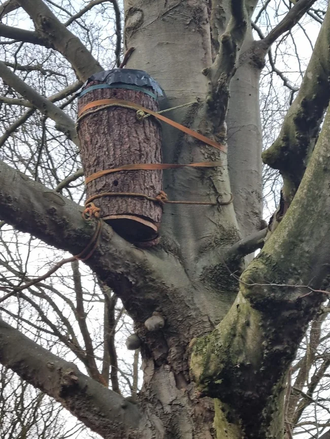 10. Деревянная бочка, привязанная к дереву. Выглядит как выдолбленная изнутри с двумя отверстиями и пластиковой крышкой