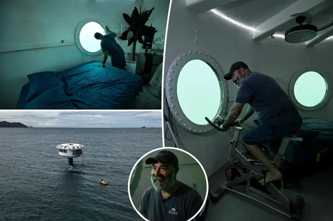 Подводный дом площадью 30 квадратных метров был оснащен всем необходимым для жизни: кроватью, туалетом, телевизором, компьютером, интернетом и даже велотренажером. Электроэнергию обеспечивали солнечные панели, а доставка еды осуществлялась через трубу, которая также служила проходом для посетителей, в частности врача. Однако душевых условий в капсуле не было.