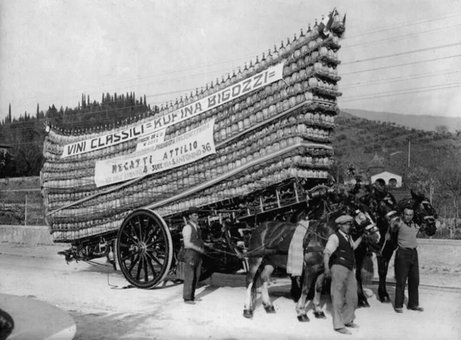 Итальянские мужики везут 2811 бутылок вина. 1935 год. Видимо, решили немного отдохнуть...