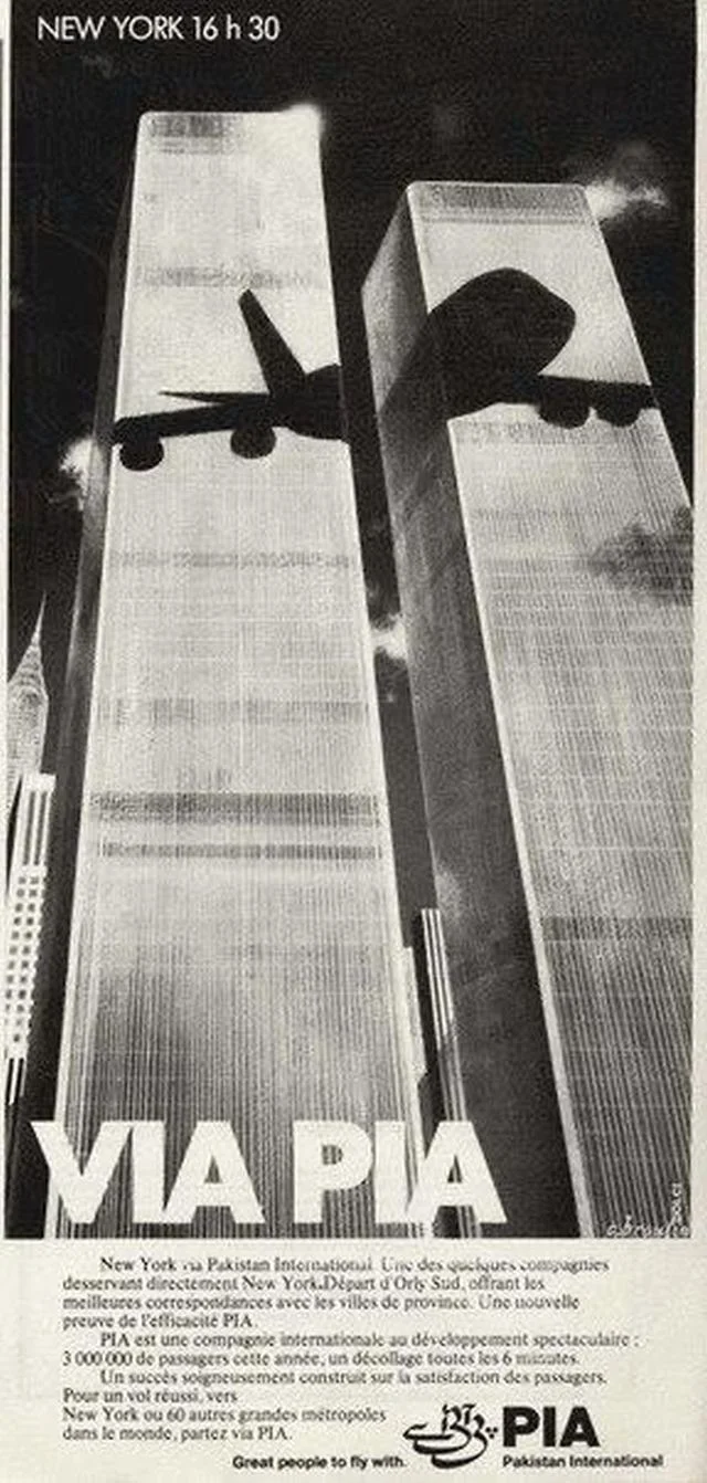 Реклама Пакистанских авиалиний на фоне Всемирного торгового центра, 1979