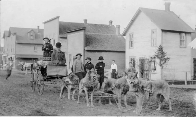 Ездовые волки, выращенные со щенков. США, 1890-е годы