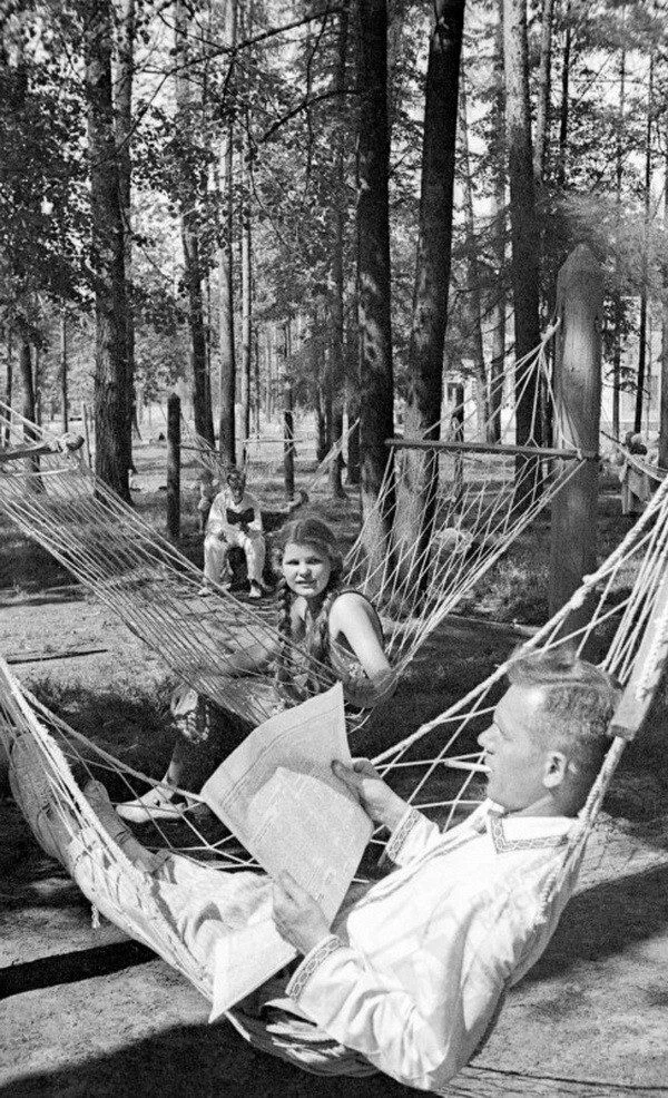 Московский Парк Горького . Отдых в гамаках. 1938