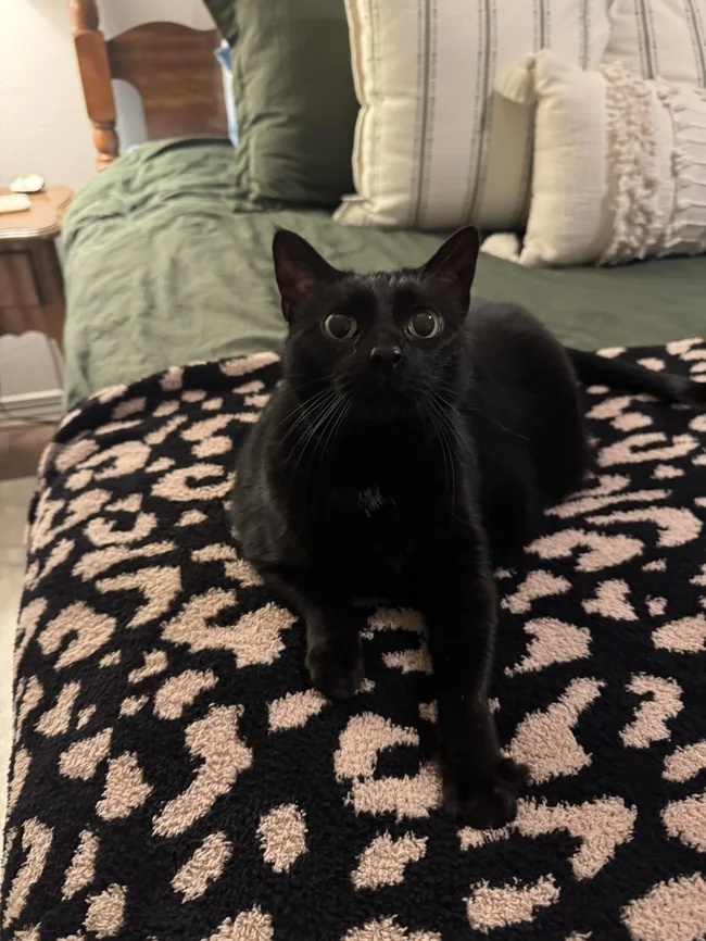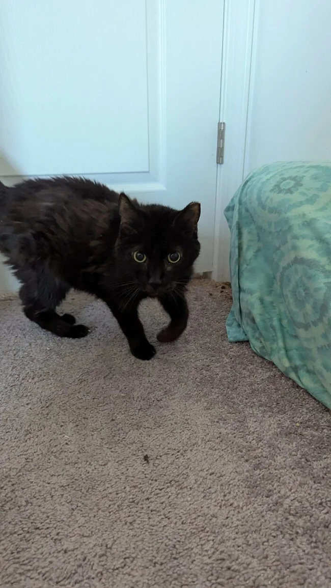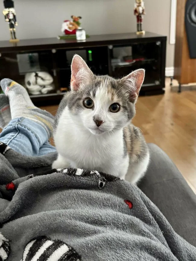 4. Это Билли, ей около года. Она очень игривая и любит прыгать по спинке дивана. Я не знаю, что произошло с её глазами, их удалили в приюте. Предполагаю, что она переболела кошачьим гриппом, это и лишило её зрения