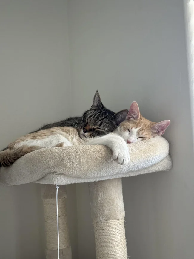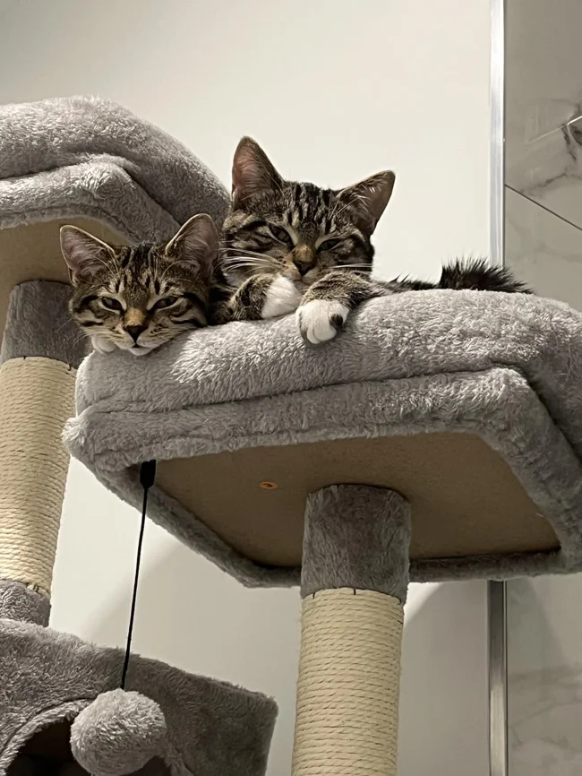 35. Наш табби Миу-Миу постоянно кусался, и нам посоветовали завести для него кошку. Мы взяли Коко из местного приюта, и теперь они неразлучны! Миу-Миу перестал нас сильно кусать. Они обнимаются при каждом удобном случае, едят и спят вместе, играют ве ![]()