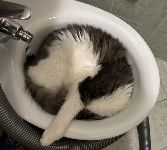 1. Друг нашёл кота в ванной, в не очень удобном положении