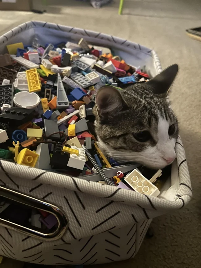 4. Кот чуть ли не с головой забрался в игрушки