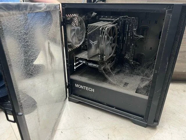 Вентиляционные отверстия компьютера, забитые кошачьей шерстью