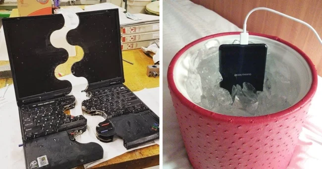 17 примеров, когда люди не смогли найти общий язык с техникой и испортили её самым неожиданным образом (18 фото)