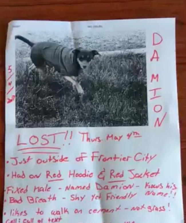 Карликовый пинчер Дамиан пропал в 2017 году во время переезда из Массачусетса в Аризону. Семья сделала остановку недалеко от Оклахома-Сити, когда пёс сорвался с поводка и убежал. Хозяева неделю искали Дамиана, но, к сожалению, безуспешно.