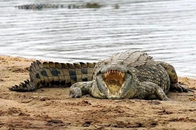 Нильский крокодил по другую сторону баррикад тоже не лыком шит. Он — второй по величине крокодил в мире, длина крупных особей достигает 5 метров. Его тело заковано в прочную бронированную чешую, а пасть усыпана частоколом из острых зубов.