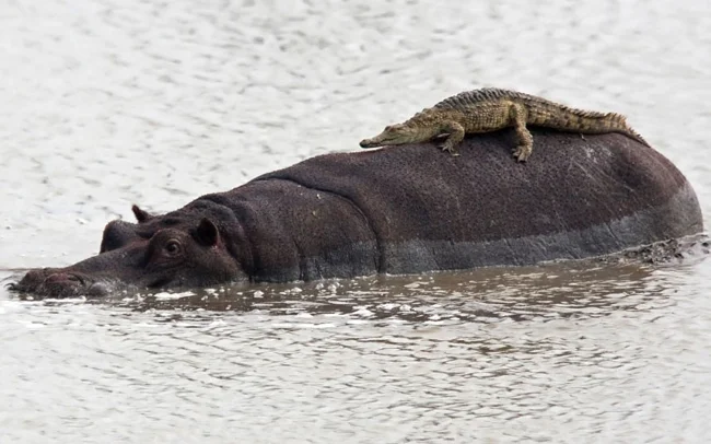 Но почему? Разве бегемоты и крокодилы — это не естественные враги?